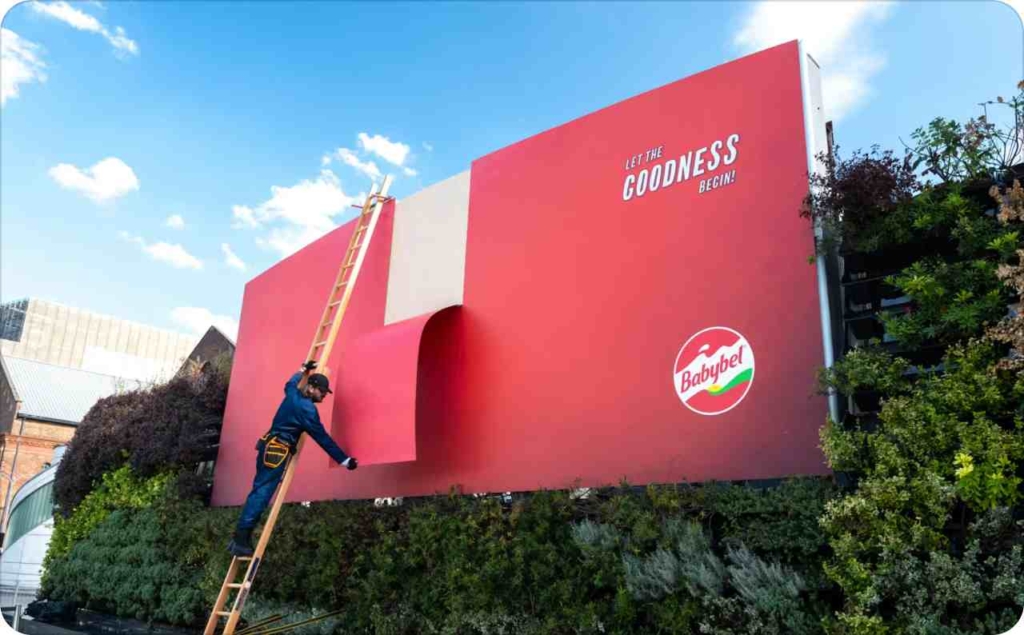 A giant outdoor advertising installation that peeled open in real time, revealing Babybel’s iconic red wax layer.