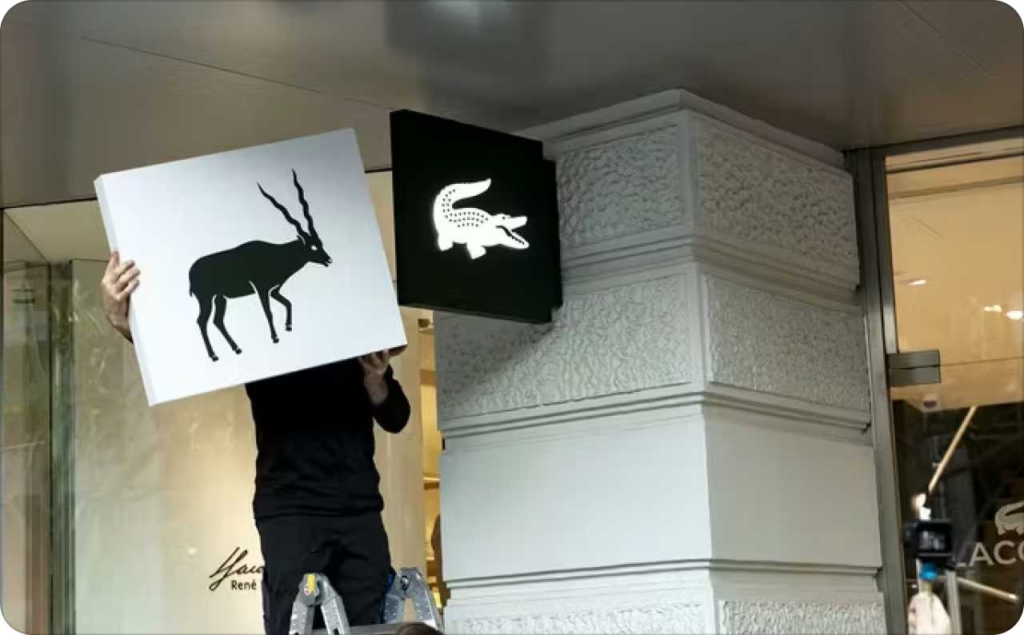 Billboards and storefronts replaced the brand’s crocodile logo with endangered animals, each representing a species close to extinction.