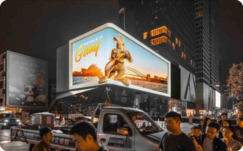 A worldwide tourism OOH campaign featuring animated ambassador “Ruby the Roo,” combined with digital extensions and influencer tie-ins.