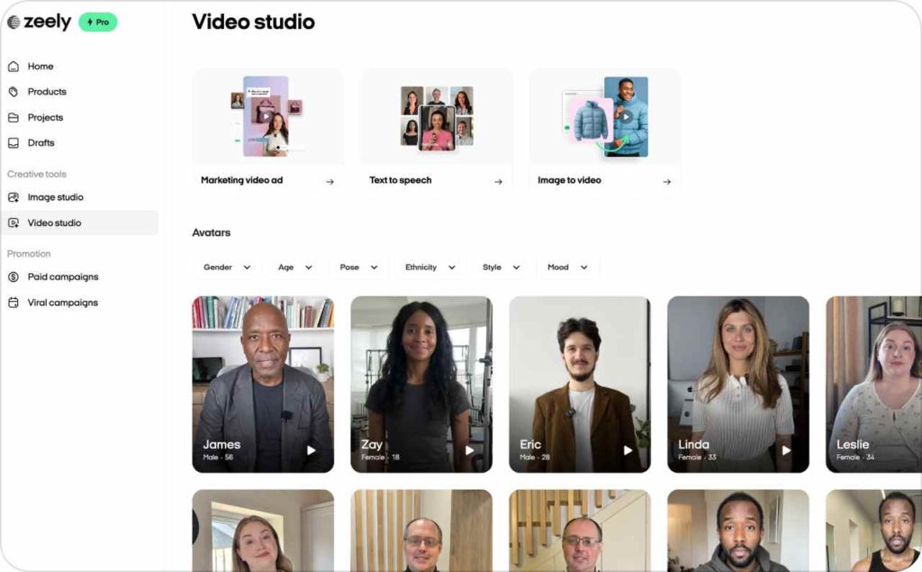 If an ad’s conversion rate drops, it might be due to a new algorithm or audience fatigue. For instance, if your CTR suddenly falls, Zeely AI lets you swiftly implement a fresh creative hook or a different AI avatar.