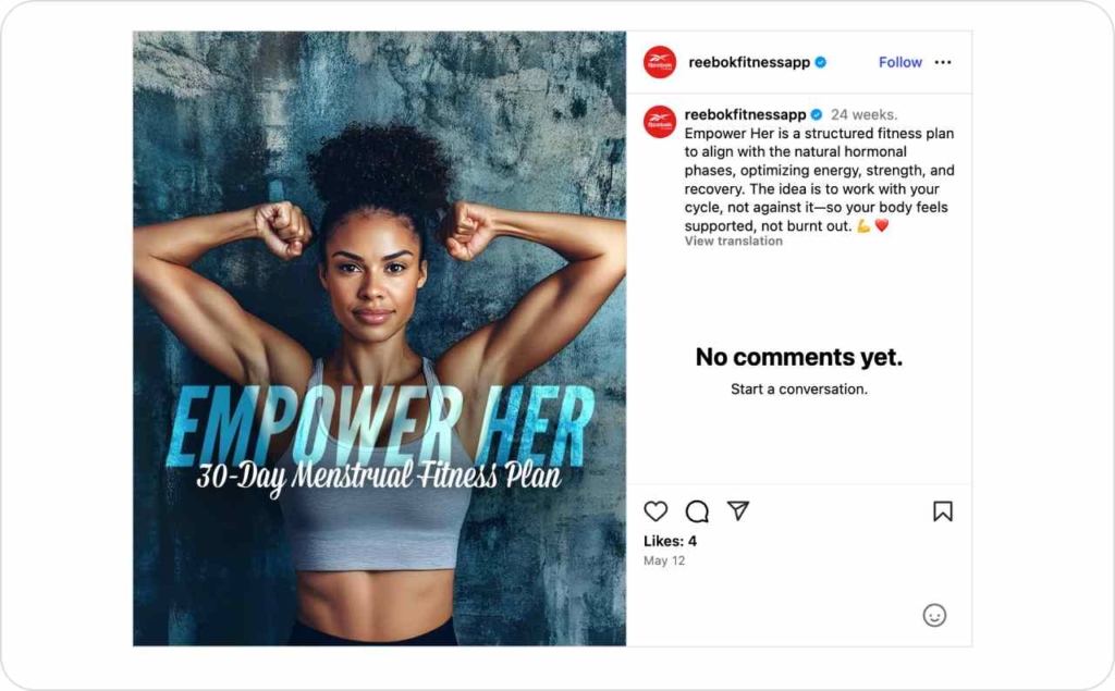 Reebok shifted the spotlight from surface-level transformation to inner strength, celebrating discipline, mindset shifts, and personal milestones that women achieve on their fitness journeys. The campaign leaned into a three-act narrative arc and featured authentic brand ambassadors whose stories felt lived, not scripted.