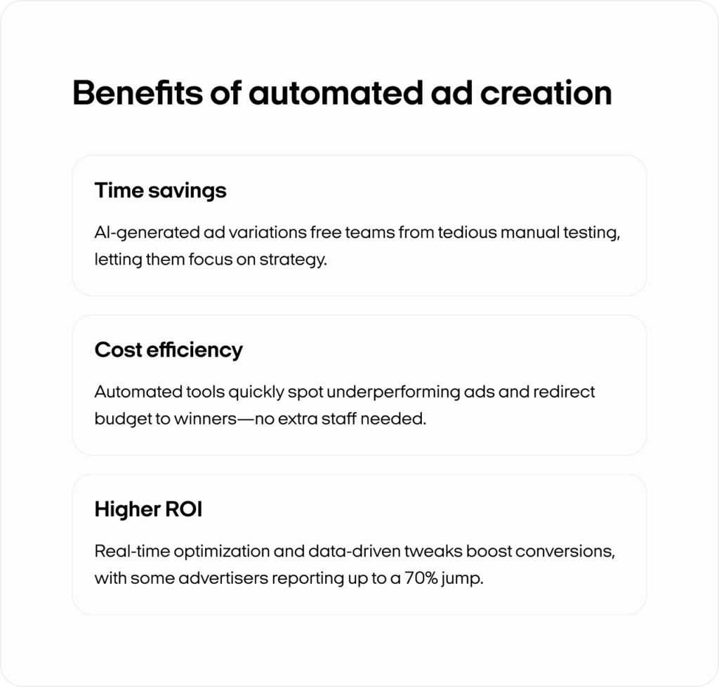 Automated ad creation changes that dynamic via AI-driven tools. Instruments refine every element of your ads in real time, you don’t need endless manual testing.