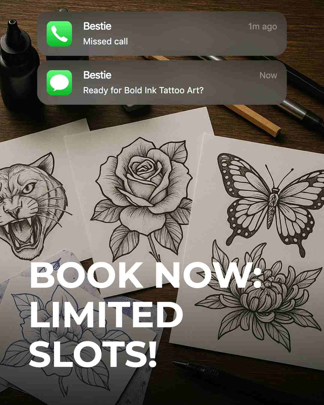 Add opt-in forms to your tattoo website/portfolio and collect consent in your online booking system for tattoo shops. Offer value that fits your brand identity: early access to flash sheets, cancellation list alerts, design drops, or convention schedules. Mirror the sign-up link on Instagram, TikTok, Pinterest, and your Google Business Profile for tattoo studios to capture high-intent locals — clean, on-brand forms reinforce your branding for tattoo artists.