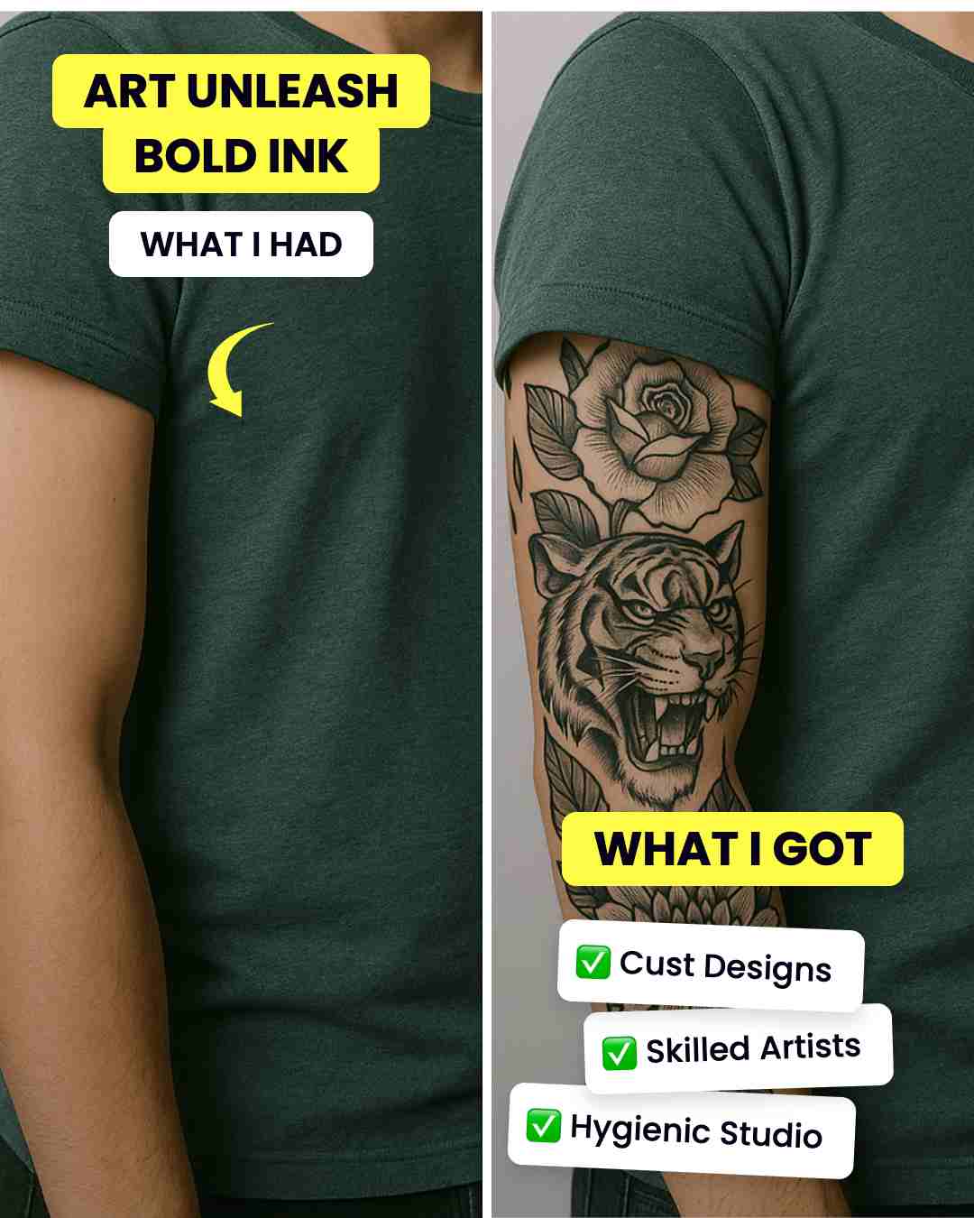 - Highlight consistent craftsmanship, hygiene, and healed results. Share before/after and healed work in Reels and carousels — foundational content marketing for tattoo artists that builds confidence